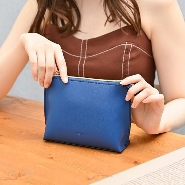 うすマチのポーチはスタイリッシュなバッグにもピッタリ収まります。