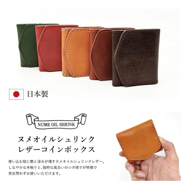 【送料無料】レザーコインボックス 小銭入れ コインケース ヌメオイルシュリンク 牛革 メンズ レディース 日本製 本革