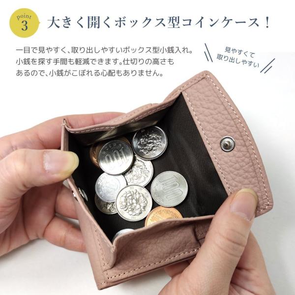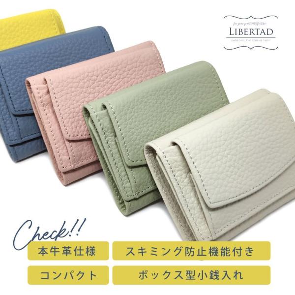 本革を使用した上質感のあるミニ財布。 柔らかい質感で手に馴染みやすい牛本革を使用。手のひらサイズのコンパクトなサイズ感なので、小さめのバッグや洋服のポケットにも入るので、携帯性に優れています。長財布にも負けない大容量タイプで、お札は折らずに収納可能、出し入れもスムーズです。財布の設計に合わせた、6箇所のカードポケットは約6〜12枚までカード収納が可能です。一目で見やすく、取り出しやすいボックス型小銭入れが便利!また、大切なカードの情報を盗まれないよう、外側全体にスキミング防止機能シートを搭載。非接触型のスキミングを防止します。無地のシンプルなタイプなので飽きずに長く使え、カラーバリエーションも豊富な9色を取り揃えました。