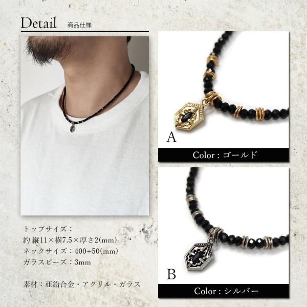 メンズ ネックレス ブラックスピネル タイプ ブラックガラスビーズ ペンダント