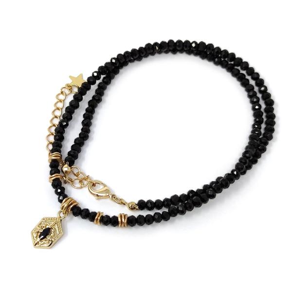 【素材】合金・鉄・アクリル・ガラスビーズ光を反射するブラックガラスビーズがキラキラとして高見えのするネックレス。