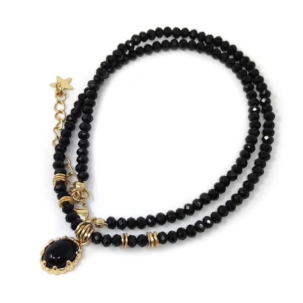 【素材】合金・鉄・アクリル・ガラスビーズ光を反射するブラックガラスビーズがキラキラとして高見えのするネックレス。