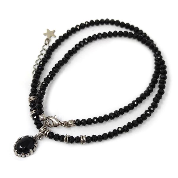 メンズ ネックレス ブラックスピネル タイプ ブラックガラスビーズ ペンダント