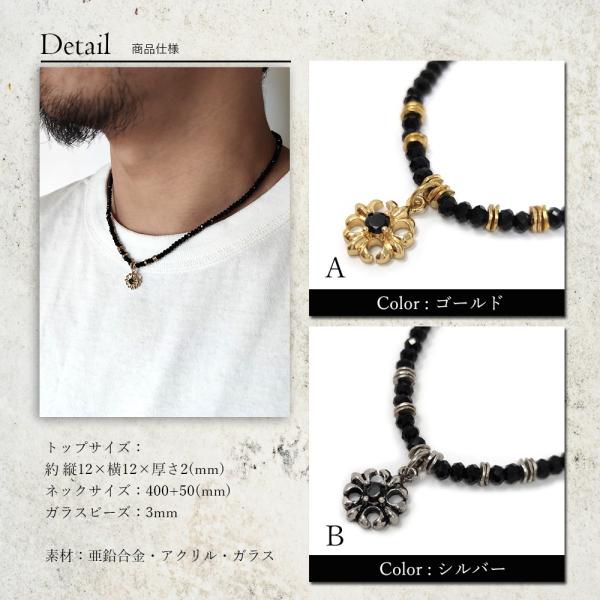 メンズ ネックレス ブラックスピネル タイプ ブラックガラスビーズ ペンダント