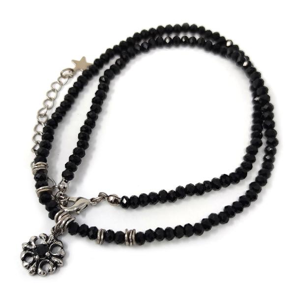 【素材】合金・鉄・アクリル・ガラスビーズ光を反射するブラックガラスビーズがキラキラとして高見えのするネックレス。
