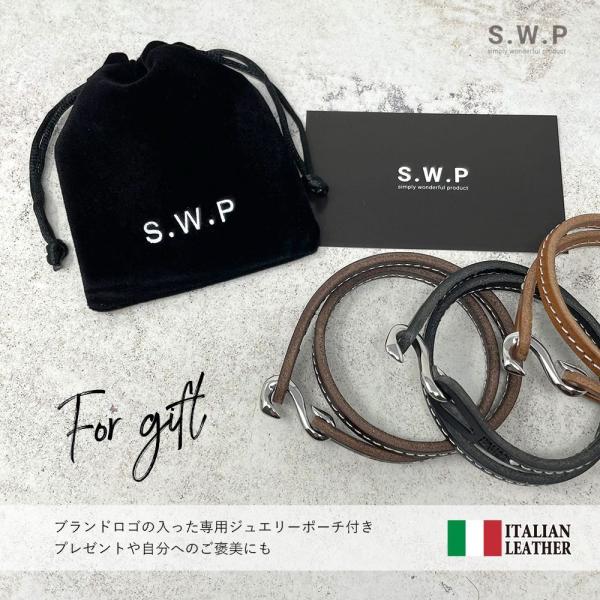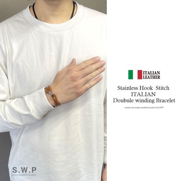 【商品説明】二重巻きタイプのレザーブレスレット。センターのステッチがカジュアルな印象でどんなファッションにも合わせやすいデザインです。留め具にはスタイリッシュで着けやすいS型フックを使用。シンプルの中に一際輝くその存在感が魅力的です。ブランドオリジナルポーチ付きで、プレゼントにもおすすめです。ユニセックスなデザインなので男女問わず、カップルやご夫婦などペアでお使いいただけます。
