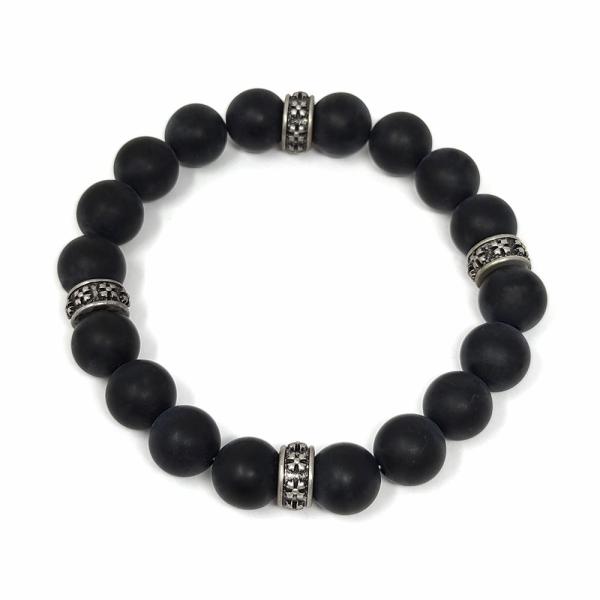 アクセントにメタルパーツを使用し、よりカッコよく存在感のある数珠ブレスに仕上げました。