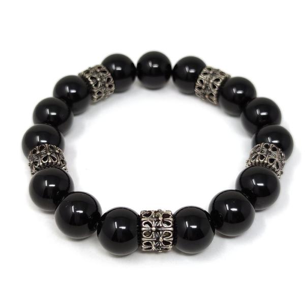 アクセントにメタルパーツを使用し、よりカッコよく存在感のある数珠ブレスに仕上げました。