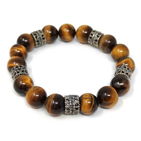 メンズ ブレスレット 開運 天然石 12mm クロス ビーズ 数珠ブレス
