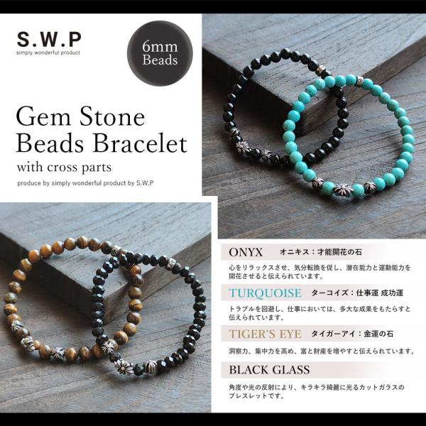 メンズ ブレスレット 開運 天然石 6mm ビーズ 数珠ブレス クロス デザイン パーツ
