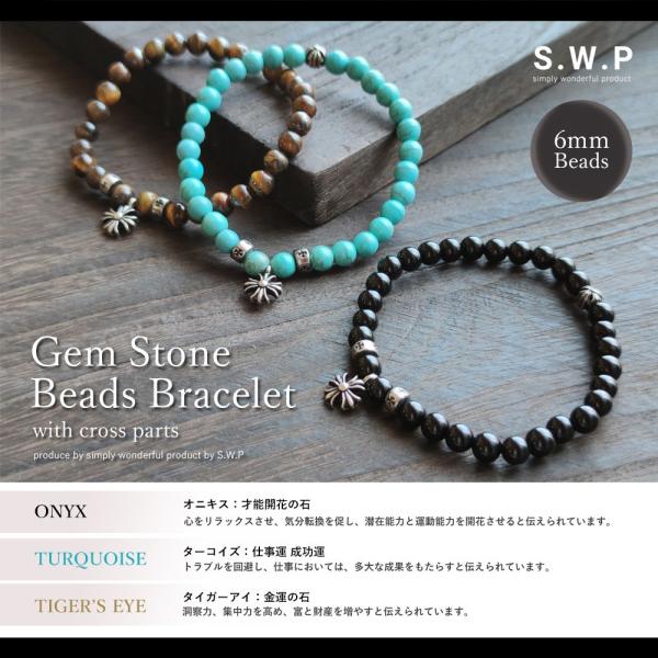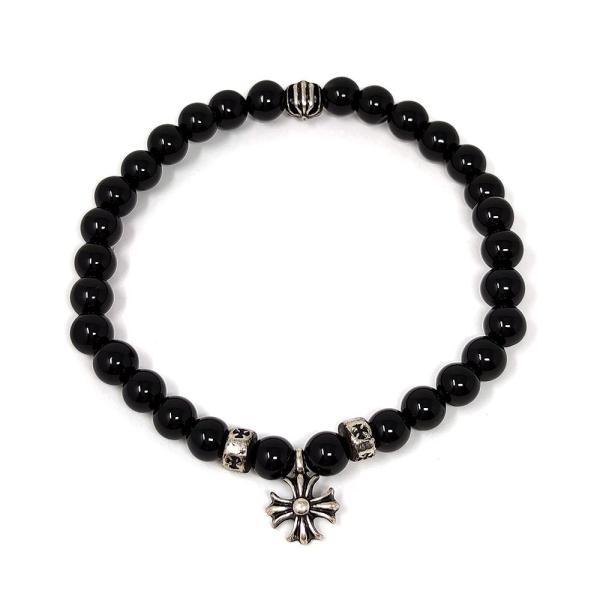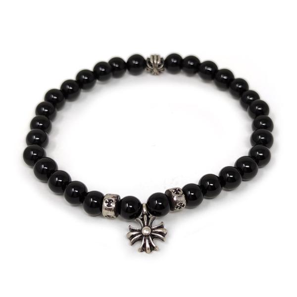 メンズ ブレスレット 開運 天然石 6mm ビーズ 数珠ブレス クロス デザイン トップ