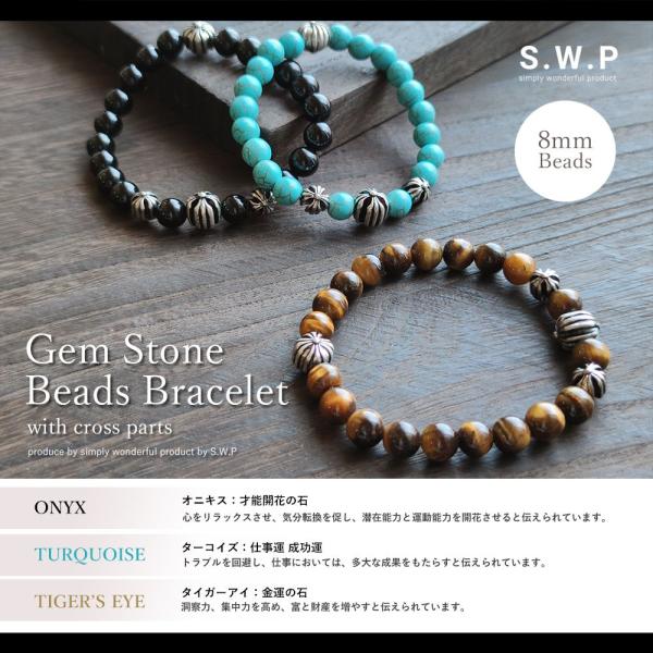 メンズ ブレスレット 開運 天然石 8mm ビーズ 数珠ブレス クロス ビーズ