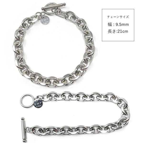 ステンレス製のチェーンブレスレット。大振りなデザインで存在感・高級感のある