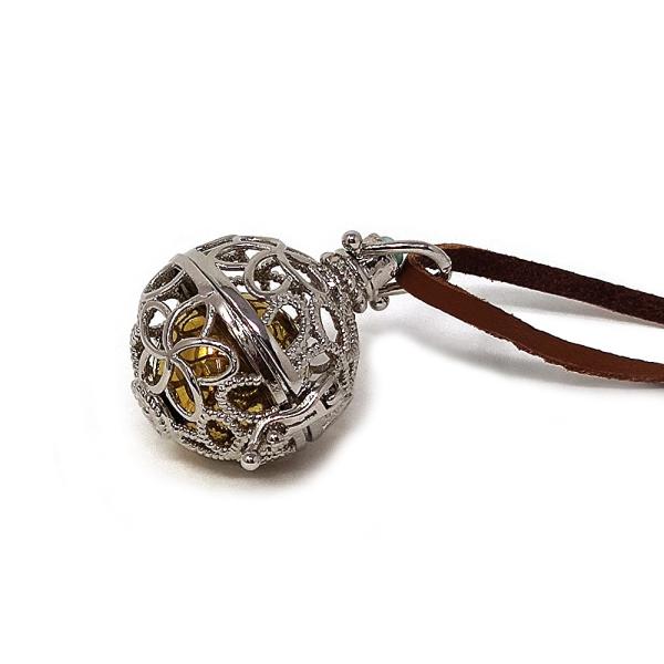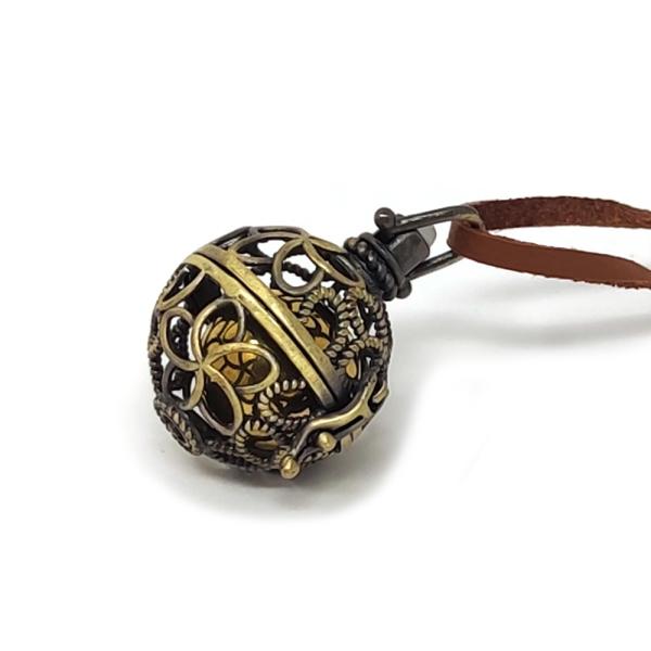 その伝統楽器ガムランと同じような美しい音色をブラス(真鍮)製の球体に封じ込めた物がガムランボールと呼ばれています。英語では「ドリームボール」とも呼ばれるこのボールをアクセサリーに使用したネックレスシリーズです。