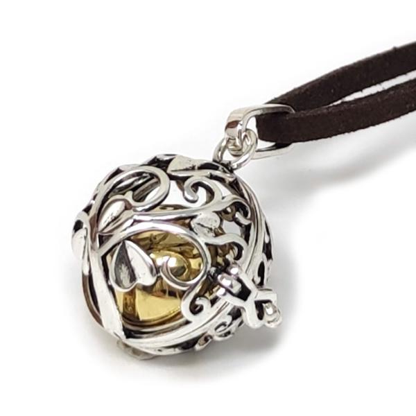 英語では「ドリームボール」とも呼ばれるこのボールをアクセサリーに使用したネックレスシリーズです。個性あふれるデザインが印象的な球体ケースの中にはガムランボールが入っており、動くたびに“シャランシャラン”と癒しの音色を奏でてくれます。優しい音色を奏でる内部のガムランボールはインドネシアBali製を使用しております。