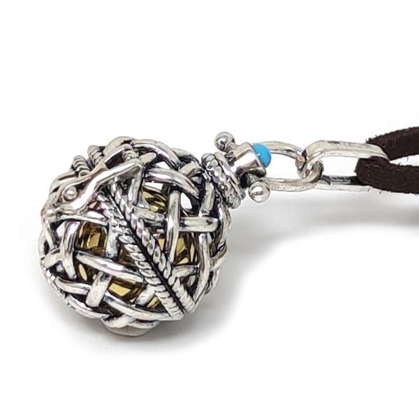 英語では「ドリームボール」とも呼ばれるこのボールをアクセサリーに使用したネックレスシリーズです。個性あふれるデザインが印象的な球体ケースの中にはガムランボールが入っており、動くたびに“シャランシャラン”と癒しの音色を奏でてくれます。優しい音色を奏でる内部のガムランボールはインドネシアBali製を使用しております。