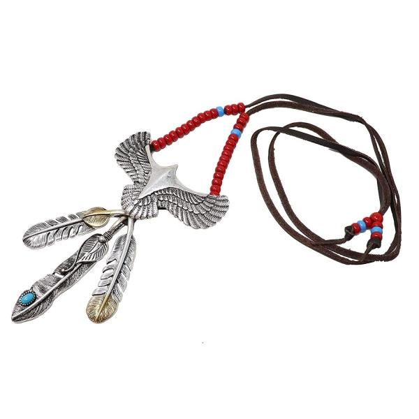 ネイティブ アメリカン フェザー レザー ネックレス メンズ インディアンジュエリー メンズアクセサリー inj-011