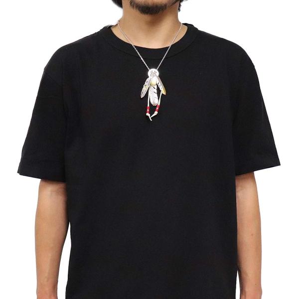 ネイティブアメリカンネックレスです。シルバーオックスメッキを使用しているので、シルバー925に近い光を放ちます。羽を身につけている時は、真実を語り自分に正直でなければいけないとされています。