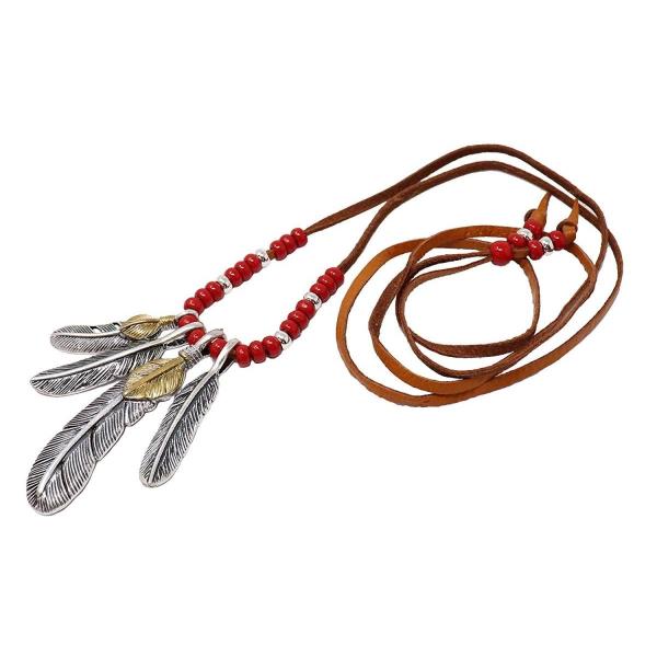 ネイティブ アメリカン ネックレス レザー シルバー ゴールド フェザー ビーズ ジュエリー メンズアクセサリー inj-034