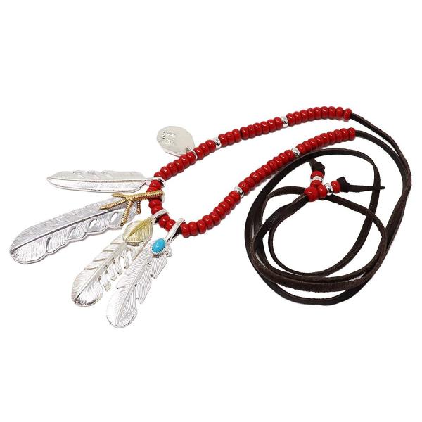 ネイティブ アメリカン ネックレス レザー フェザー ビーズ インディアンジュエリー メンズアクセサリーinj-036