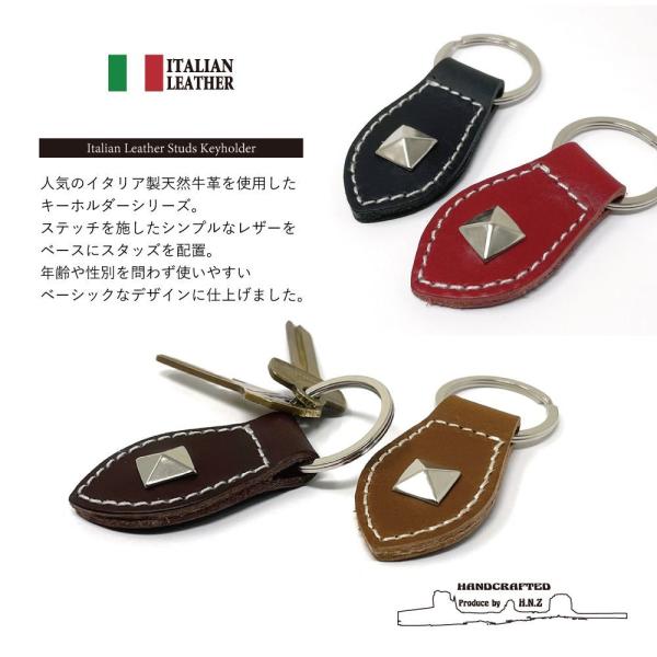 レザー キーホルダー キーリング イタリアンレザー 牛革 メンズ レディース レザー スタッズ ITALIAN LEATHER 高級感 ギフト プレゼント