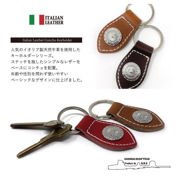 レザー キーホルダー キーリング イタリアンレザー 牛革 メンズ レディース レザー コンチョ ITALIAN LEATHER 高級感 ギフト プレゼント