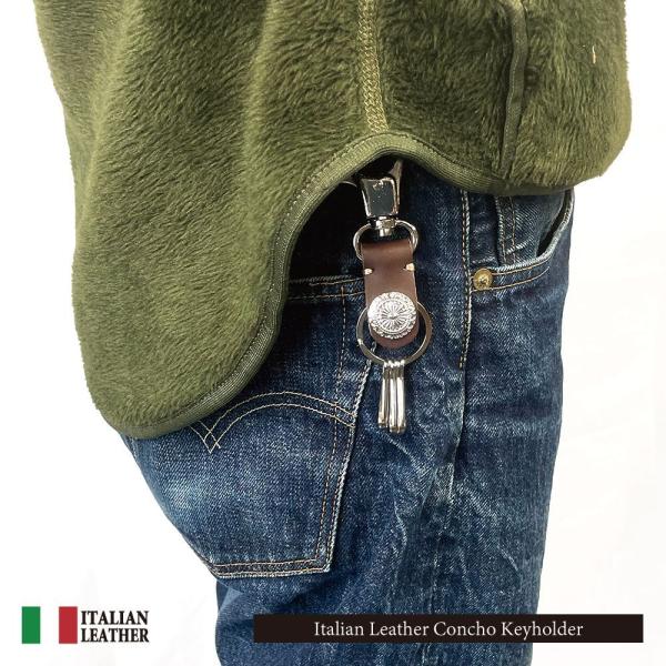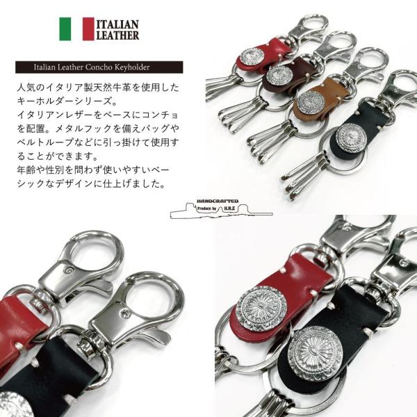 レザー キーホルダー キーリング イタリアンレザー 牛革 メンズ レディース レザー コンチョ バッグチャーム ITALIAN LEATHER 高級感 ギフト プレゼント