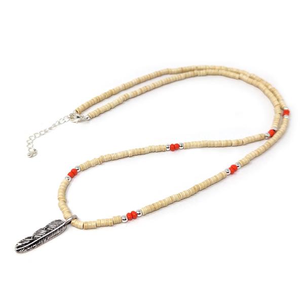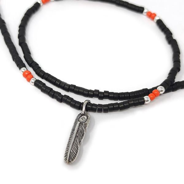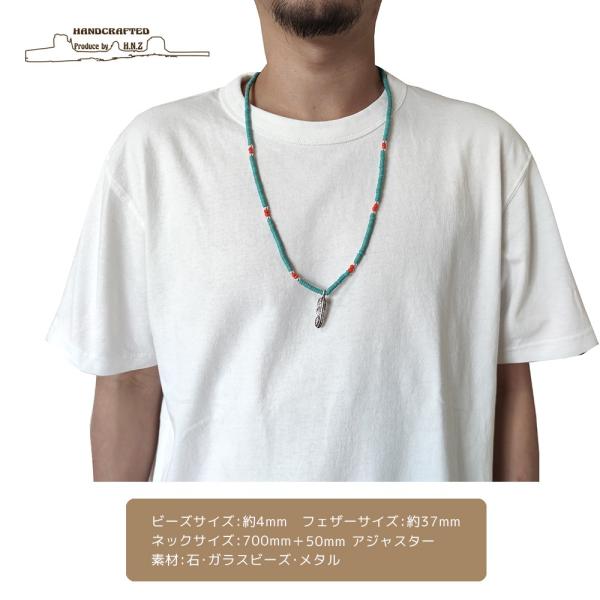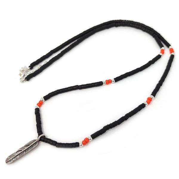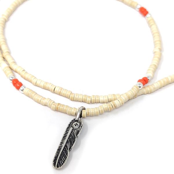 メンズ ビーズ ネックレス ネイティブ インディアン フェザー 羽