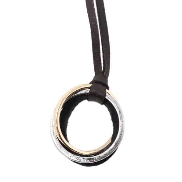 ネックレス メンズ シンプル 3連 リング ネックレス ペンダント シルバー ゴールド 革 リング メンズ レディース アクセサリー (ブラック) nape-014