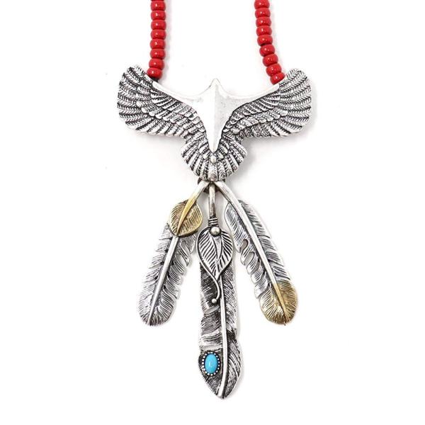 ネイティブ アメリカン ネックレス レザー シルバー ゴールド フェザー インディアンジュエリー メンズアクセサリー inj-059