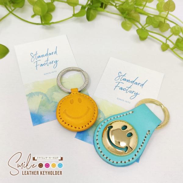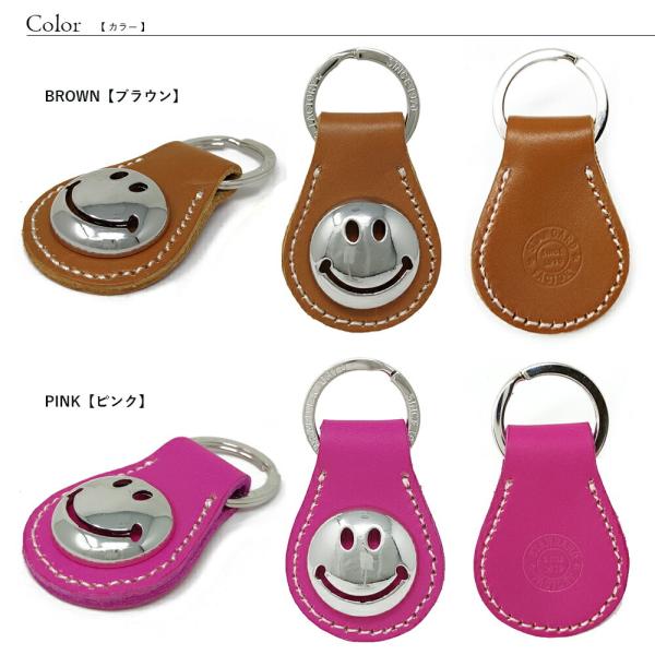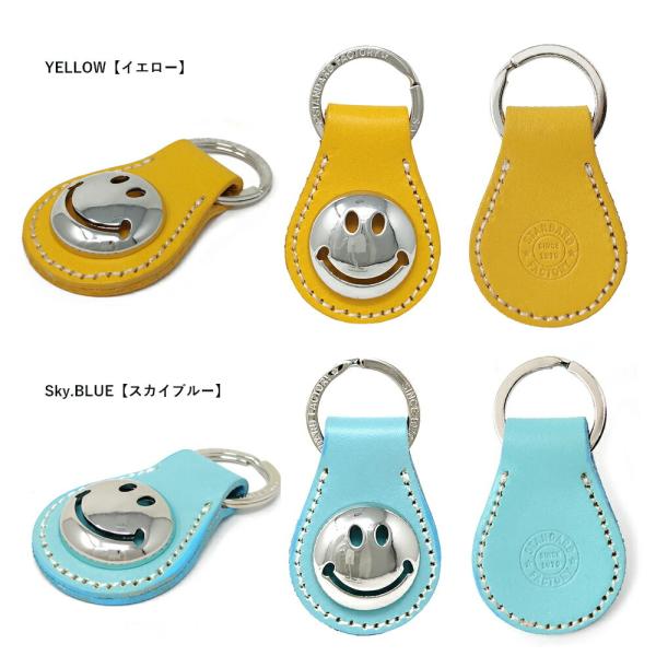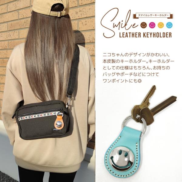 スマイル キーホルダー ニコちゃん 本革 レザー シルバー キーリング バッグチャーム カラフル