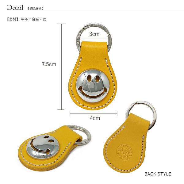 【商品説明】ニコちゃんのデザインが可愛い、本革製のキーホルダー。キーホルダーとしての使用はもちろん、お持ちのバッグやポーチなどにつけてワンポイントにも◎