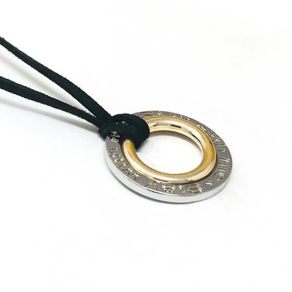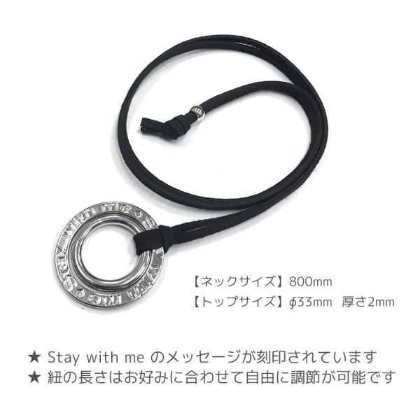 ▼Stay with meのメッセージ刻印が施されたリングメタルネックレス。 フェイクスエードのネックはサイズ調節が可能です。