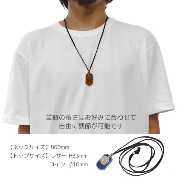 ネックレス メンズ シンプル コイン&レザー メンズ ネックレス 革タグ 革ひも ロングネックレス