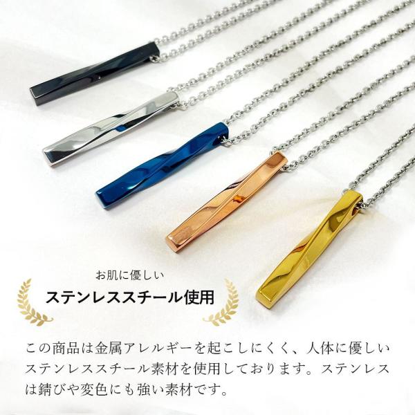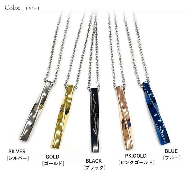 ステンレス ネックレス ひねり スティック バー ツイスト 金属アレルギー対応 ペンダント ペアネックレス 「ネコポス便送料無料」