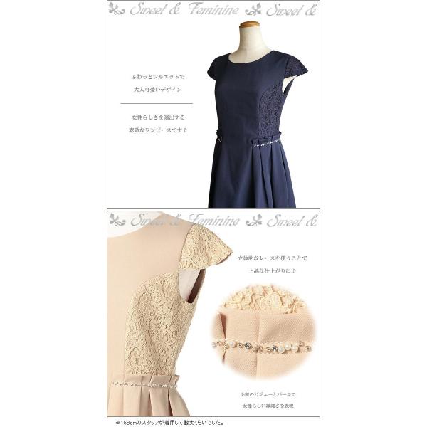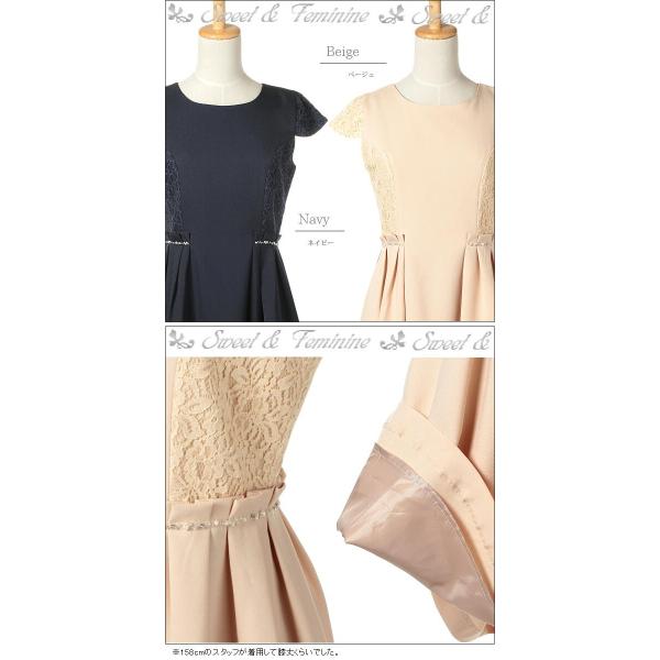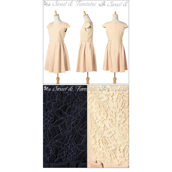 レース パーティードレス パーティーワンピース ネイビー 紺 ベージュ 結婚式 二次会 パーティドレス