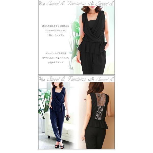 オールインワン パンツスーツ パーティー ドレス ネイビー 紺 ブラック 黒 ベージュ ノースリーブ