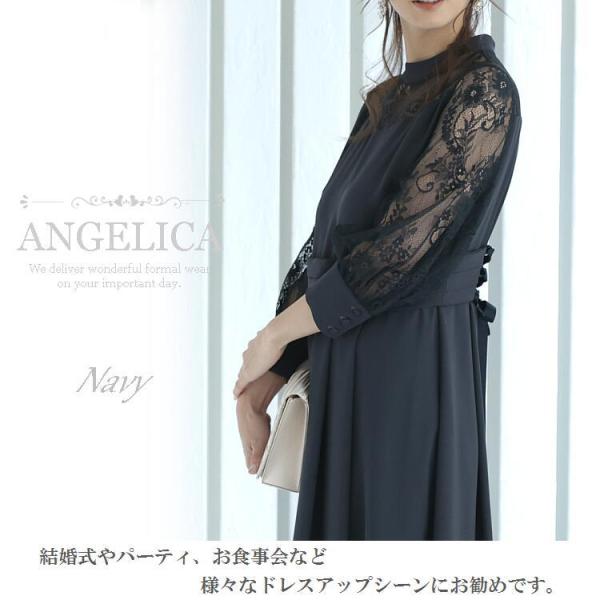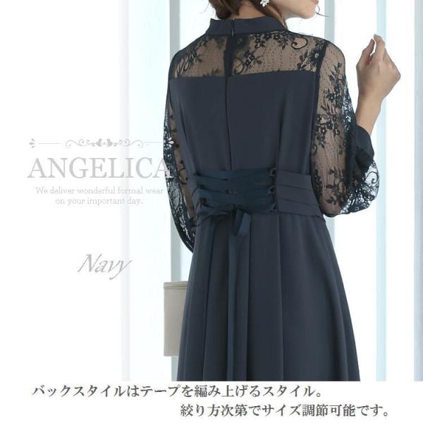 ハイネック フォーマル ドレス パーティー ドレス 結婚椎 ワンピース 披露宴 ワンピース半袖 七分袖 披露宴 結婚式 ドレス ネイビー 紺 グレー