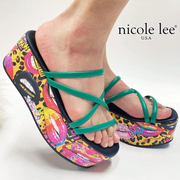 数量限定 NICOLE LEE ニコールリー SLP22073 マルチストラップ プラットフォームサンダル ラグジュアリー カジュアル スリッパ 厚底 グラフィック ペイント