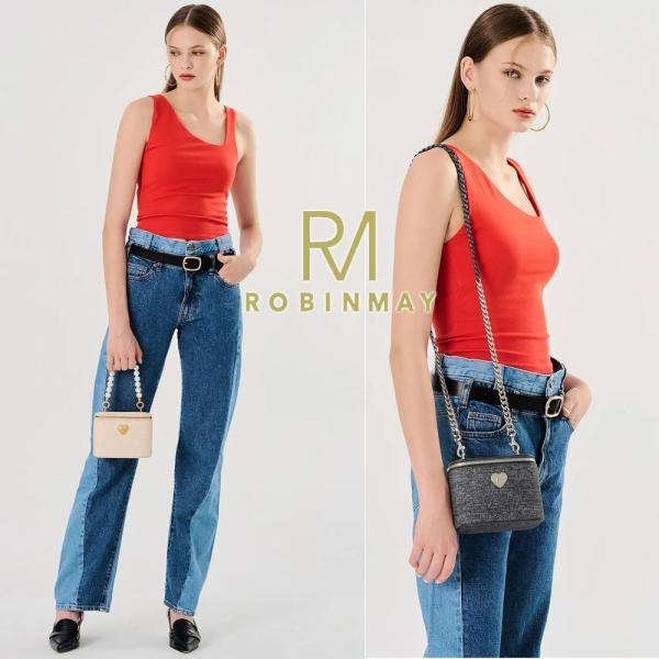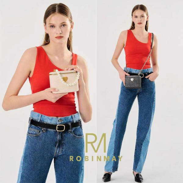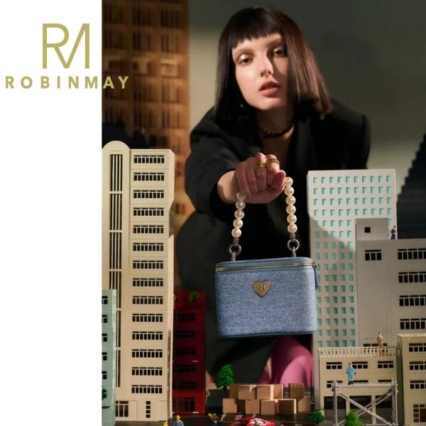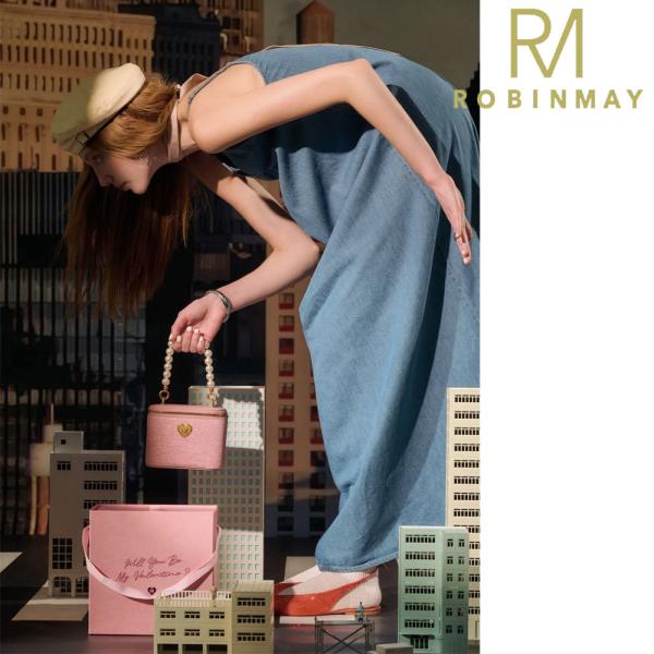 保証付 返品OK 正規品 ROBINMAY ロビンメイ C333 月光寶盒斜背包 バレンタイン バニティバック レディース コスメ デニム パールハンドストラップ