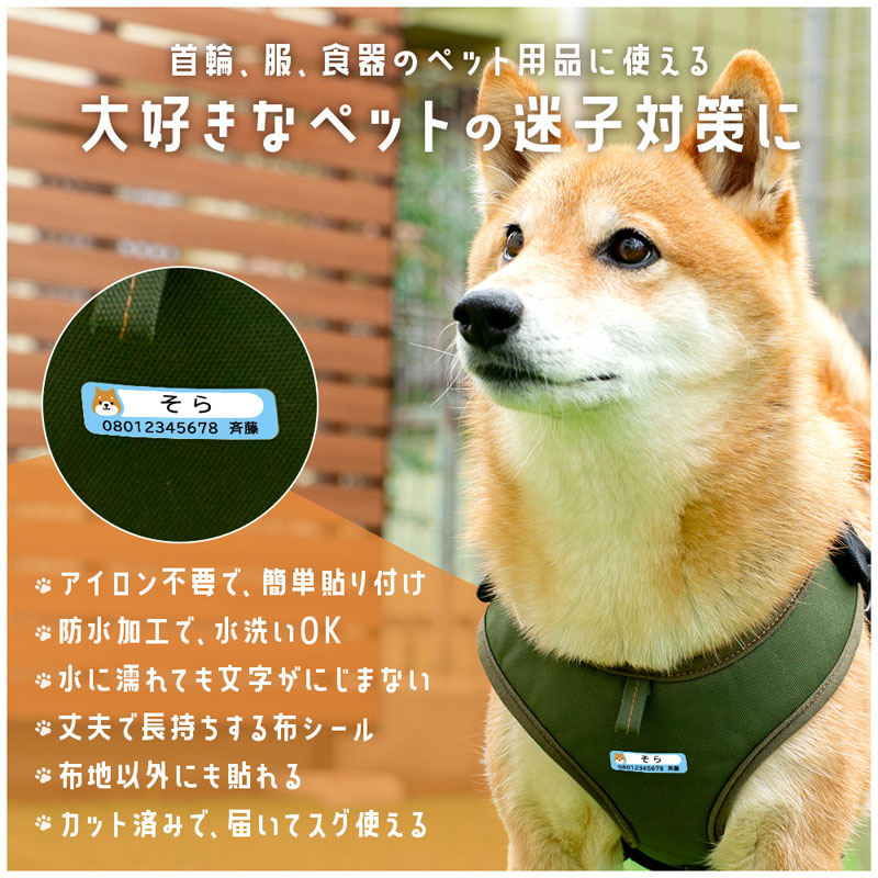 なまえシール 迷子防止 アイロン不要 タグ 布 防水 耐水 耐熱 名札 首輪 ドッグタグ ペット用品 災害対策 迷子札 ペット名前シール ギフト グッズ 贈り物 爆買