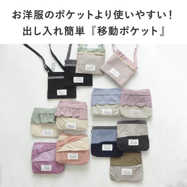 ハンカチ、ティッシュに加え、マスクの予備も収納できる移動ポケット。片手で開け閉めできるから小さなお子様にも◎。普段のお洋服に合わせやすい北欧カラーがポイントです。
