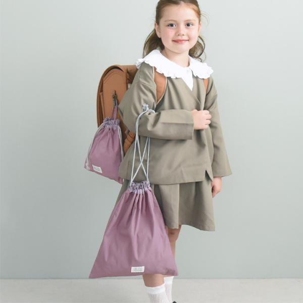 体操着を入れるのにちょうどいい大きめの巾着袋。持ち運びしやすく、学校机のフックに掛けやすい仕様、そしてシンプルデザインだから、高学年になるまで飽きずにお使いいただけます。