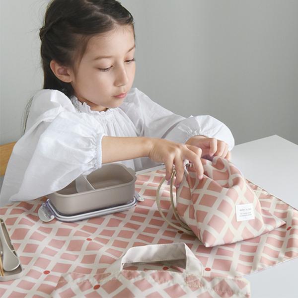 子供用のコップやランチョンマットを入れる巾着袋。シンプルな大人かわいい雰囲気で、おしゃれ感もある北欧テキスタイル風。保育園や幼稚園、小学校まで長く使っていただけます。