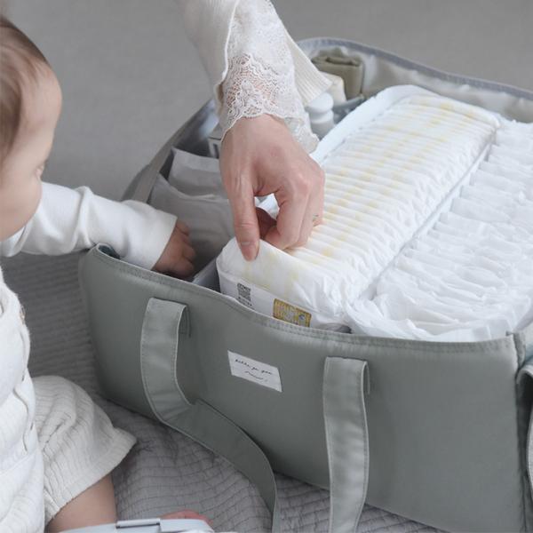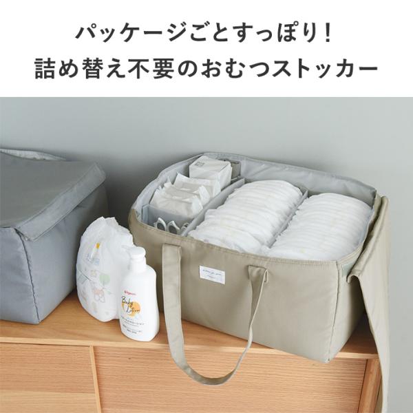 1日に何個も消費するおむつをパッケージごとまるごとすっぽり入れておける、おむつストッカー。シンプルなデザインで見せ置きもOK、おむつ収納の手間を減らせます。