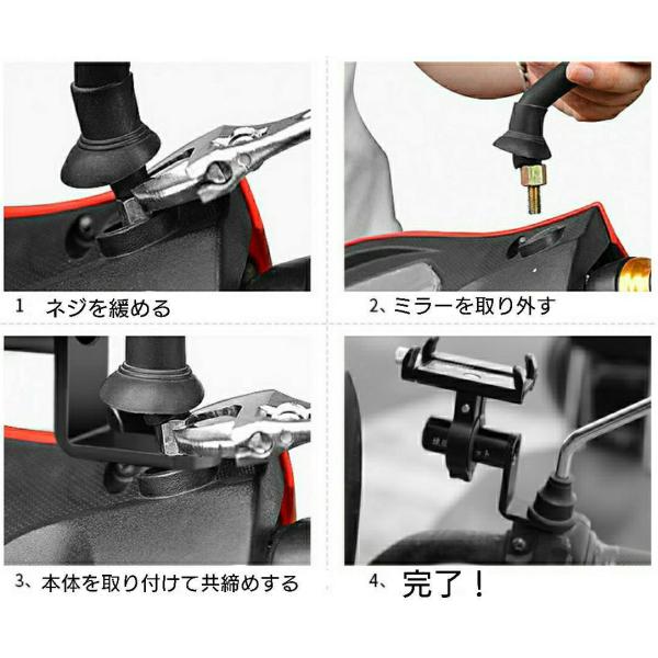 ボルト、ミラーなどに共締めするなどしてご使用ください。