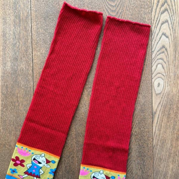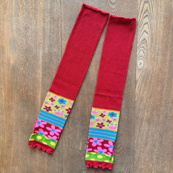 ぶたさんとフラワー柄のアームウォーマー。