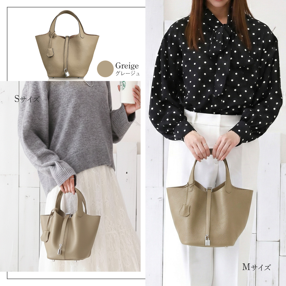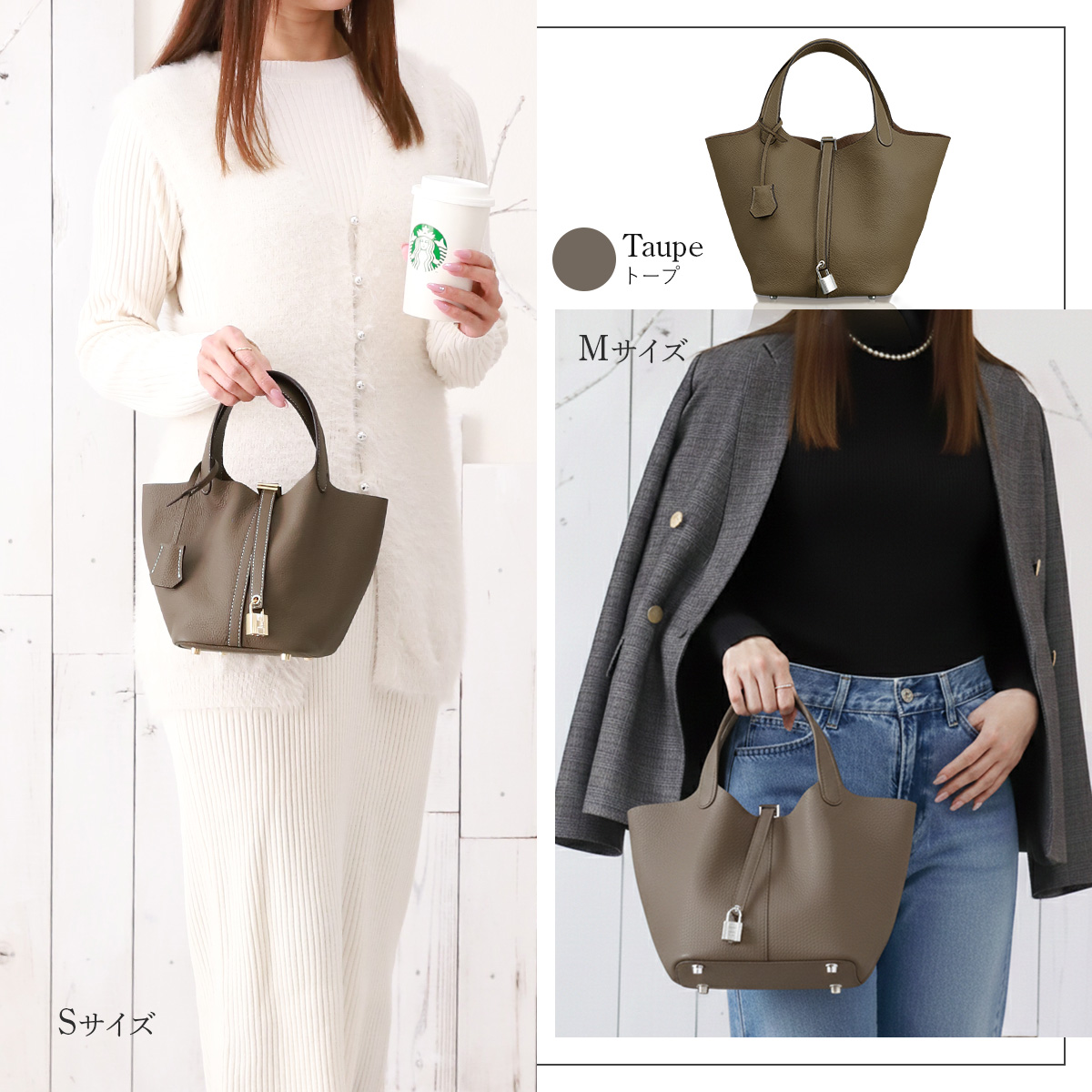 ハンドバッグ 本革 レディース 小さめ キューブバッグ バッグインバッグ レザー 革 バケツバッグ トートバッグ Mサイズ Sサイズ