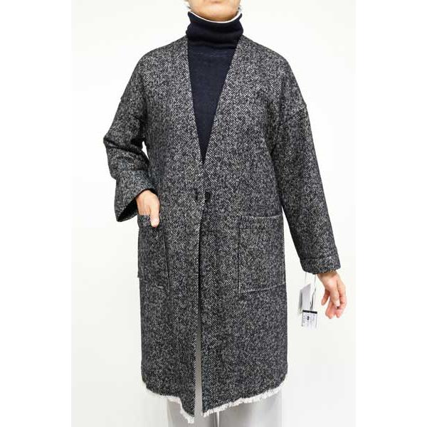 秋冬最終処分【アエカブラン/1824881/60%OFF】毛絹ヘリンボーンツイードVネック1釦リラックスライトコート裾フリンジ98cm/spc/1i12b703xx/qpv
