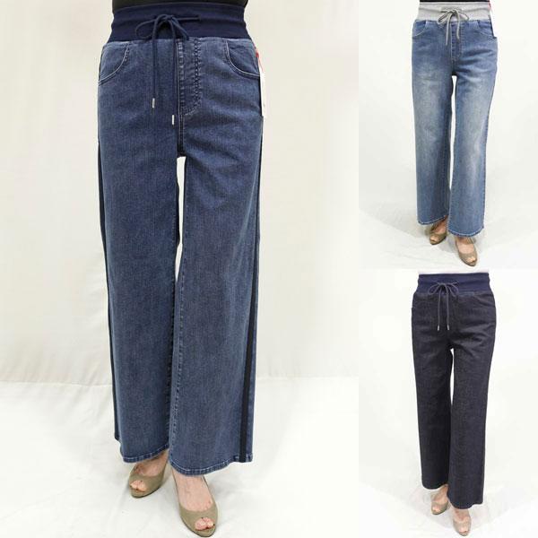 春夏物【ローブ/パシオーネ/年間物/定番/516655/536655】綿ポリストレッチデニム+Wリブドロストセミワイドフレアーパンツサイドライン/spt/spp/7i71b771xx